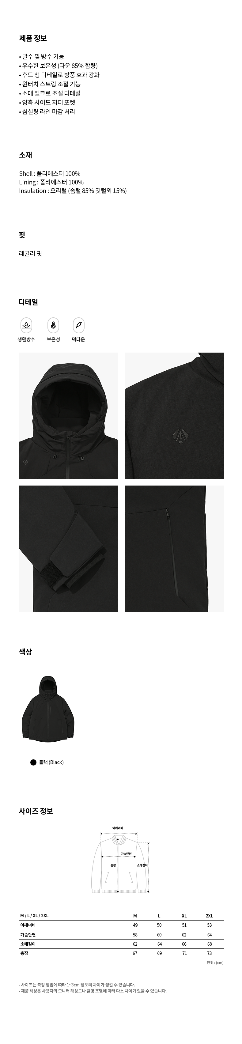 • 제품의 방수·투습·발수 기능 유지를 위해 드라이클리닝을 권장합니다.