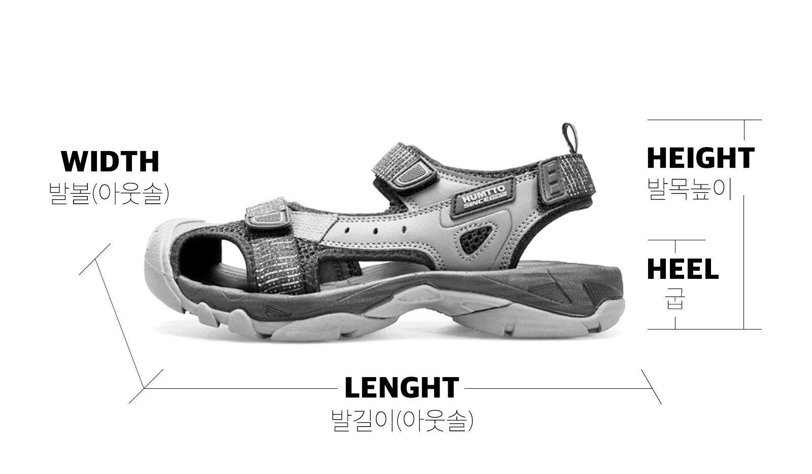 | SIZE(mm) | 발길이 | 발볼 | 발목 높이 | 굽 |