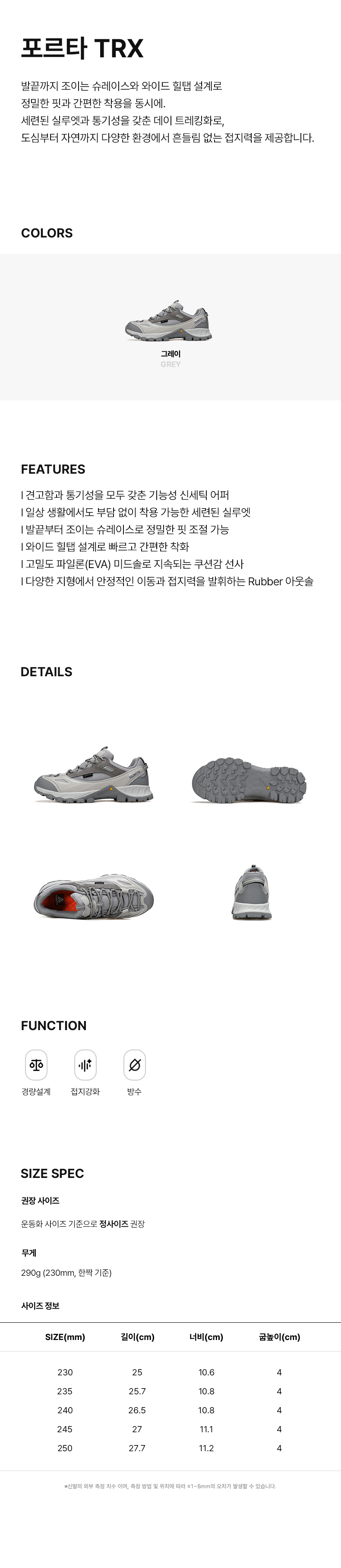 | SIZE(mm) | 발길이 | 발볼 | 발목높이 | 굽 |