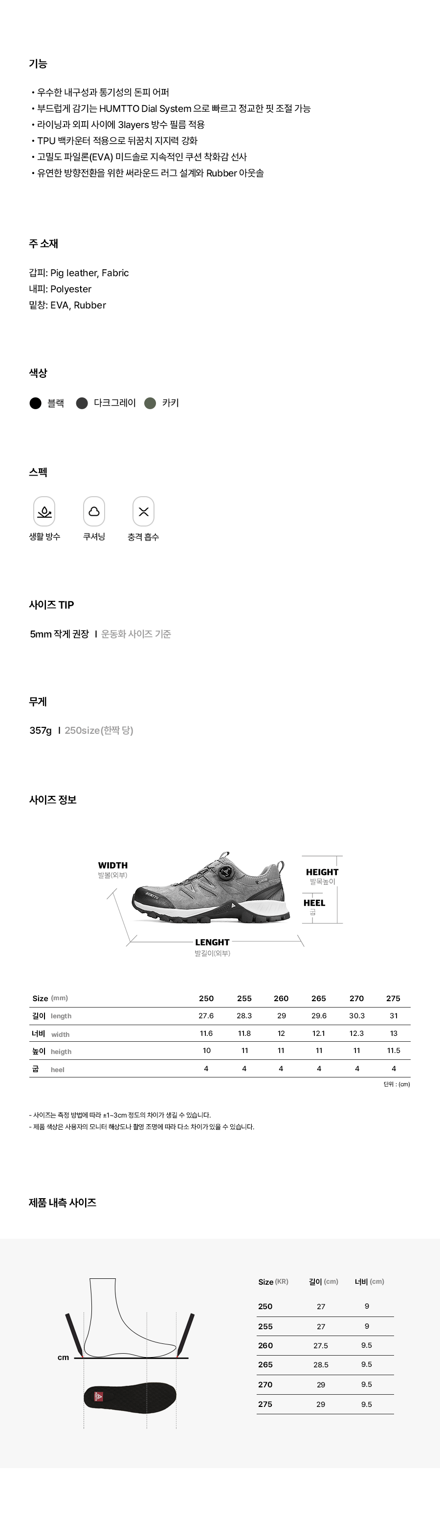• 밑창(재료): EVA, Rubber