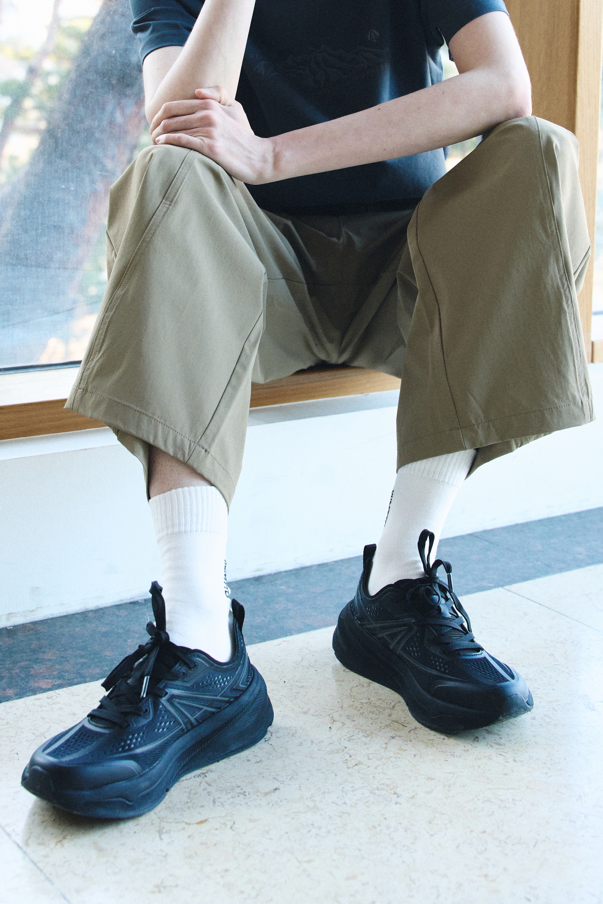 발목을 부드럽게 감싸는 소프트 바인딩 카라 구조와 와이드한 발볼 설계로 장시간 착용에도 편안하며,