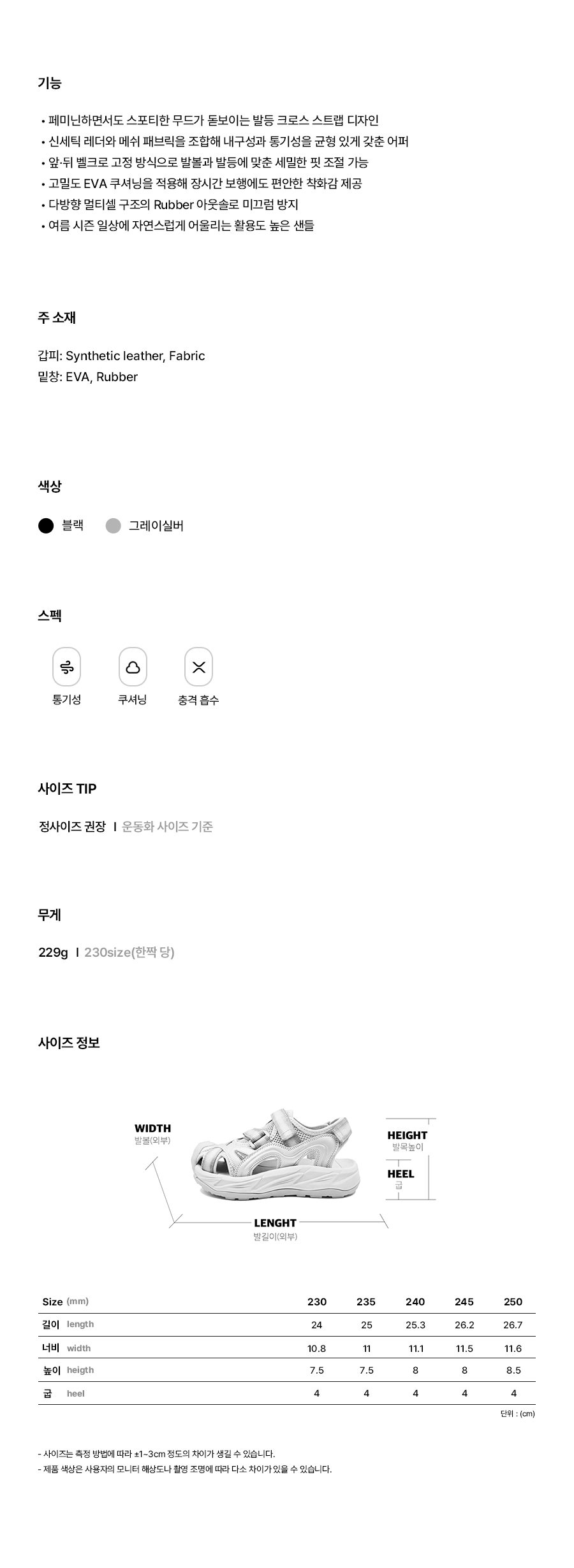 • 밑창(재료): EVA, Rubber