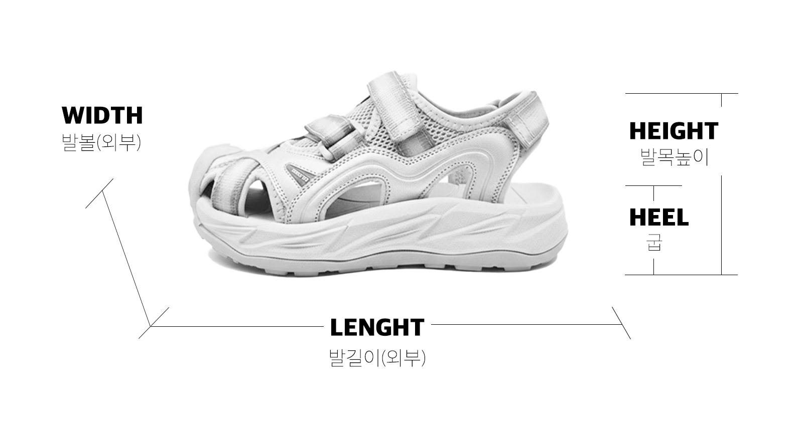 | SIZE(mm) | 발길이 | 발너비 | 발목높이 | 굽 |