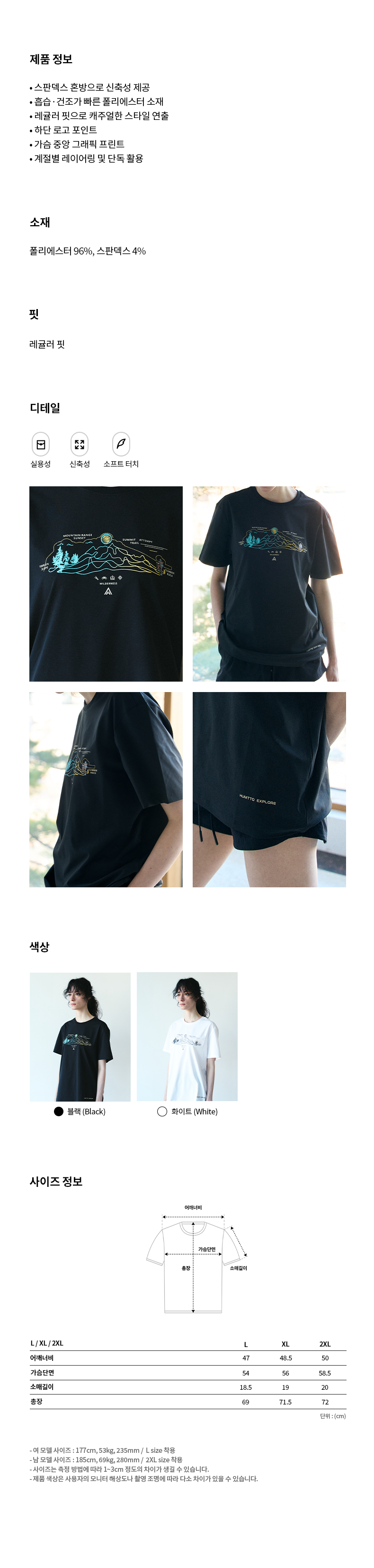 | *남 모델 ❘ 2XL(size) 착용 / 185cm, 69kg *여 모델 ❘ L(size) 착용 / 177cm, 53kg | (단위:cm) |